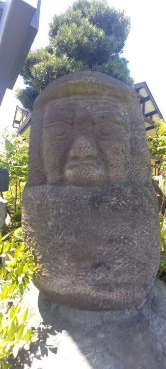 看板の下には大きな石の達磨が!
