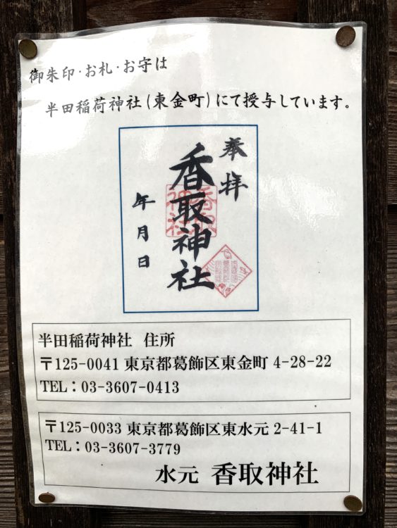 なお上記掲出のように、本香取神社の御朱印は駅寄りにある半田稲荷にて授与されているとのことですのでご注意ください。