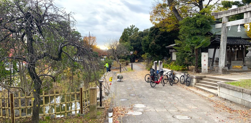 この香取神社は水元公園の内溜に隣接、もしくは見方によっては内溜の中に浮く中洲のようなイメージの土地に位置しています。そのため目の前に水元公園から流れる川があり、いつも釣りを楽しむ人たちでにぎわう神社です。