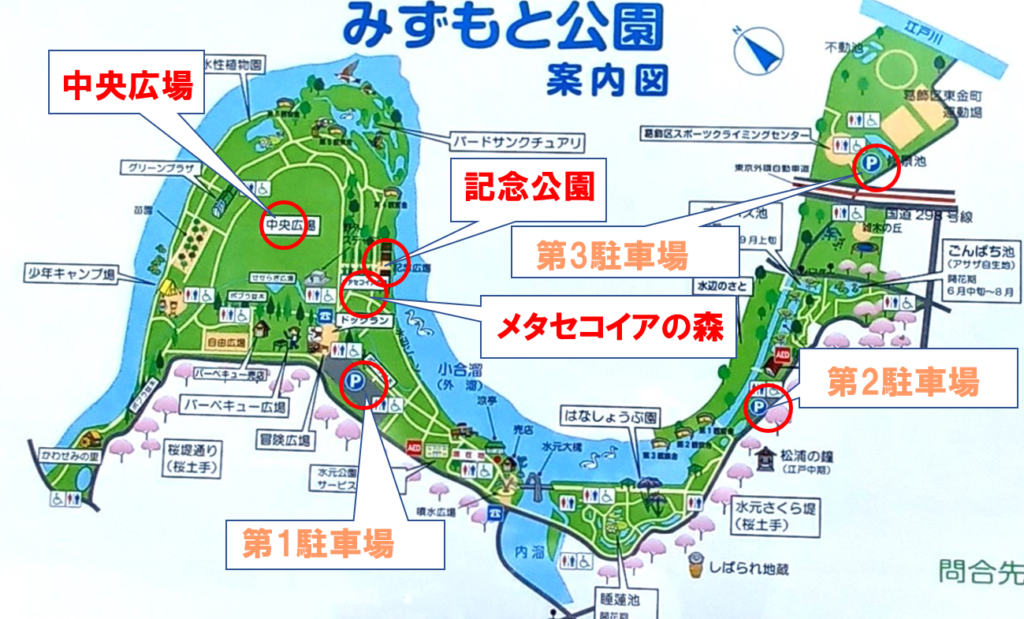 水元公園は1968年に催された「明治百年事業」(明治時代の開始から百年が経ったのを記念して行われた一連の事業)の一環として「明治百年記念公園」の指定を受けました。これを受けて、「メタセコイアの森」とともに1987年にかけ整備されたのがこの記念広場です。