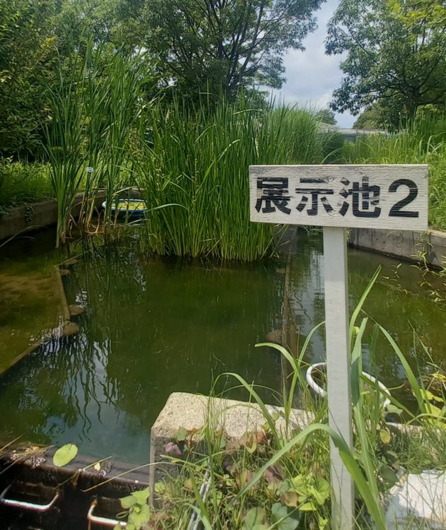 かつて水産試験場で使っていた養魚池の形状を活かして水生生物を展示。6つほどあり観察しやすいように水面を高くした池もあります。