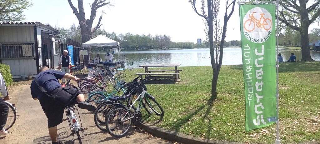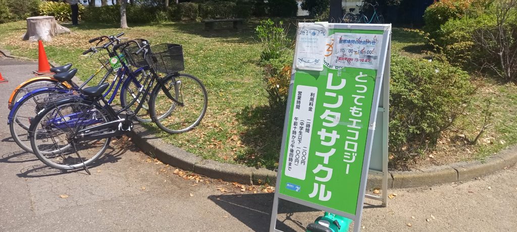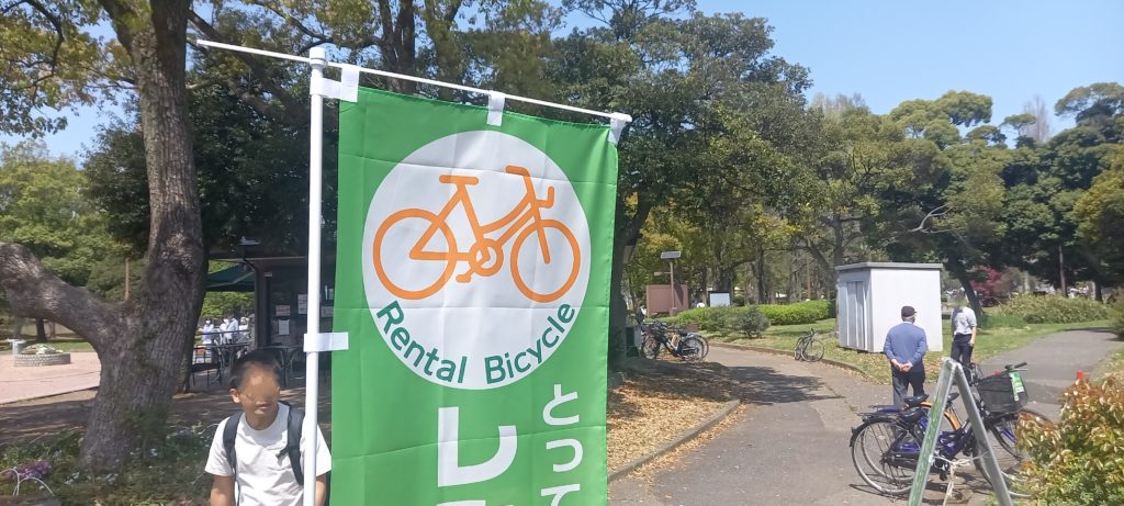正式名称の「レンタサイクル」の看板やのぼりがでています。