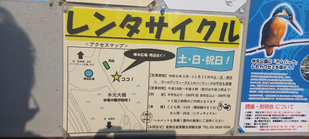 貸出場所:噴水広場売店となり水元大橋入口付近