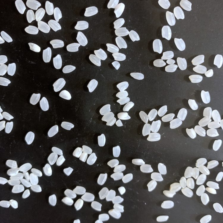 丸っこいジャポニカ米ばかりで細長いインディカ米は見つかりません。そこでもっとたくさん並べてみましたが…