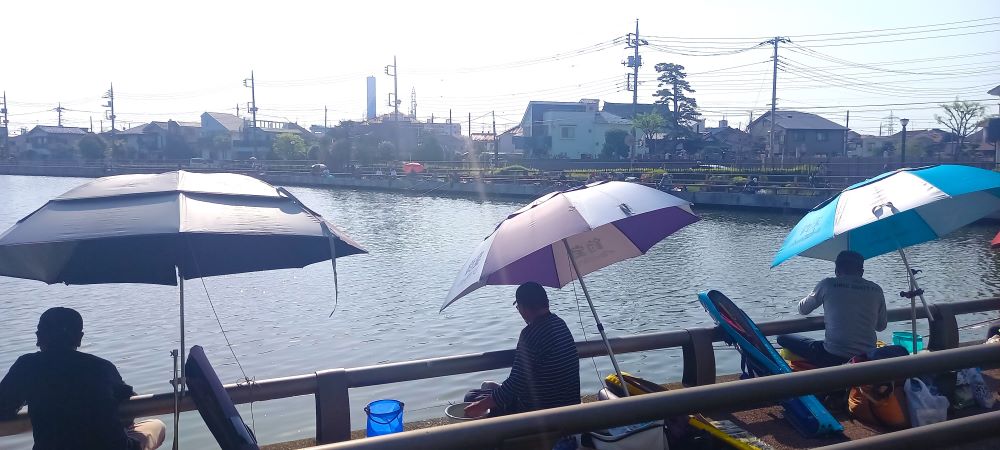 椅子やパラソルを使うなど、思い思いに快適な空間を作って釣りを楽しめます。
